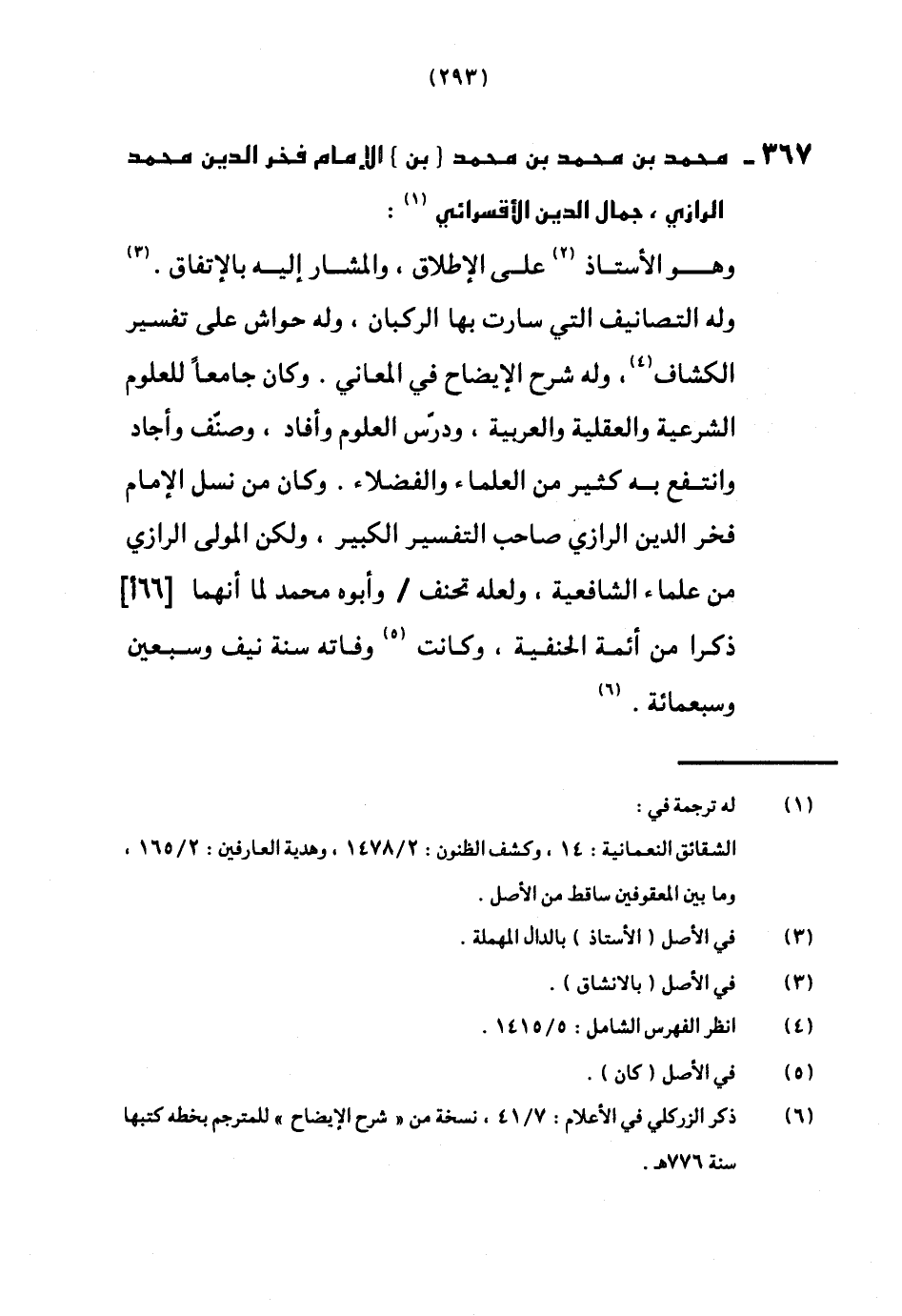 367 - مُحَمَّد بن مُحَمَّد بن مُحَمَّد بن الإِمَام فَخر الدّين مُحَمَّد الرَّازِيّ جمال الدّين الأقسرائي