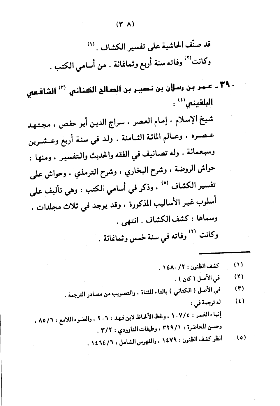 390 - عمر بن رسْلَان بن نصير بن الصَّالح الْكِنَانِي الشَّافِعِي البُلْقِينِيّ