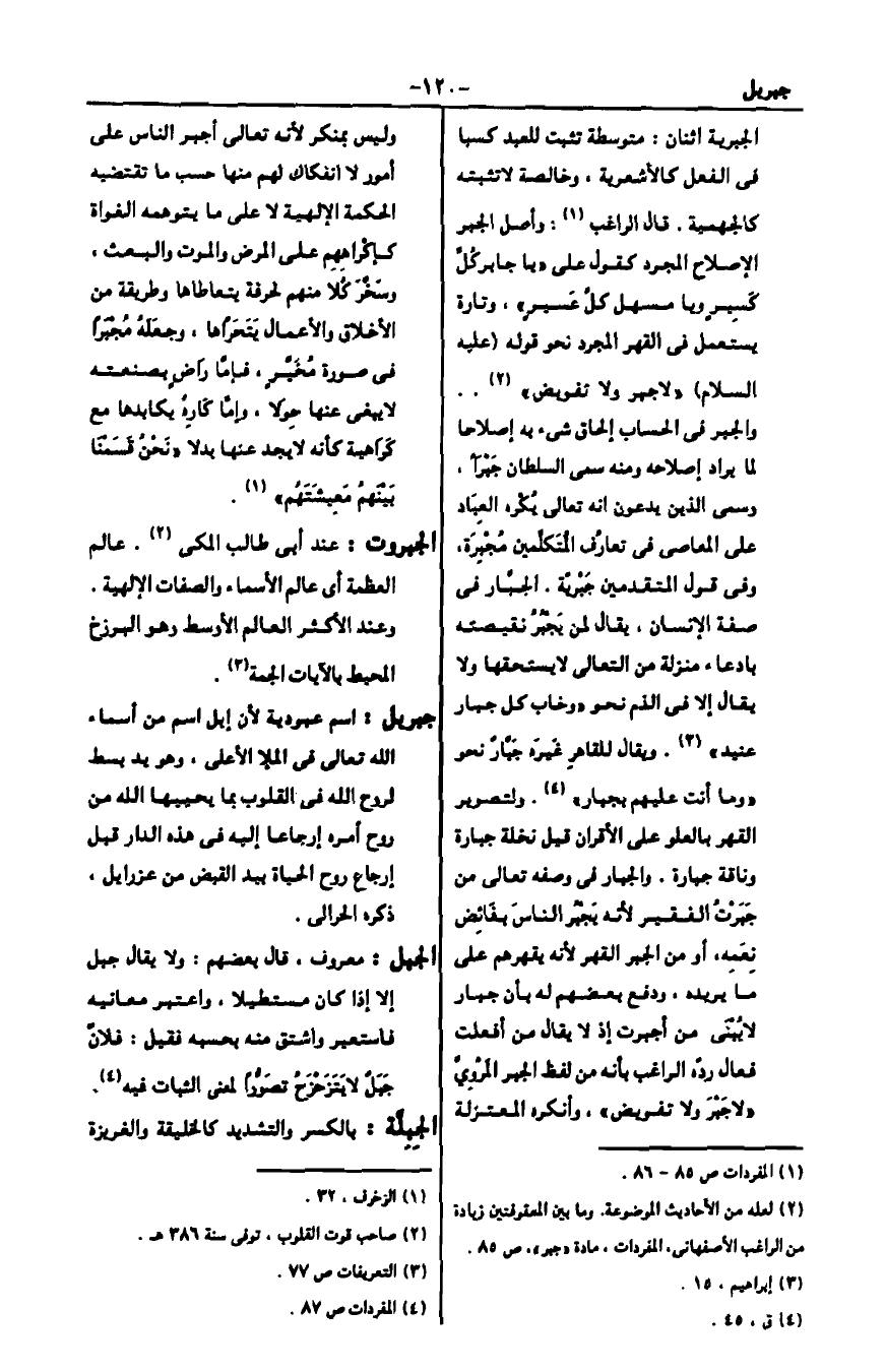 2 لعله من الأحاديث الموضوعة. وما بين المعقوفتين زيادة من الراغب الأصفهاني، المفردات، مادة "جبر" ص85.