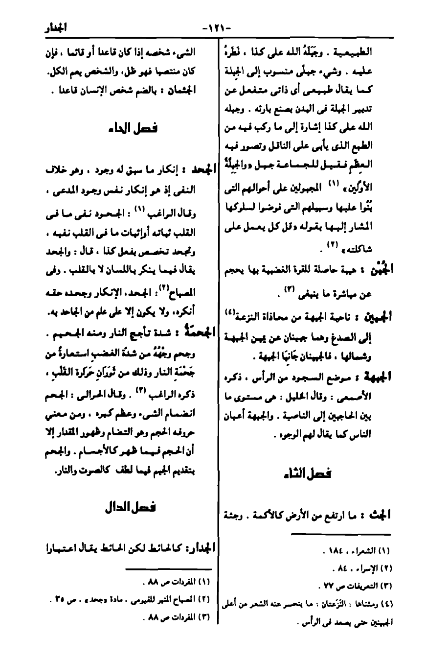 2 المصباح المنير للفيومي، مادة "جحد"، ص35.