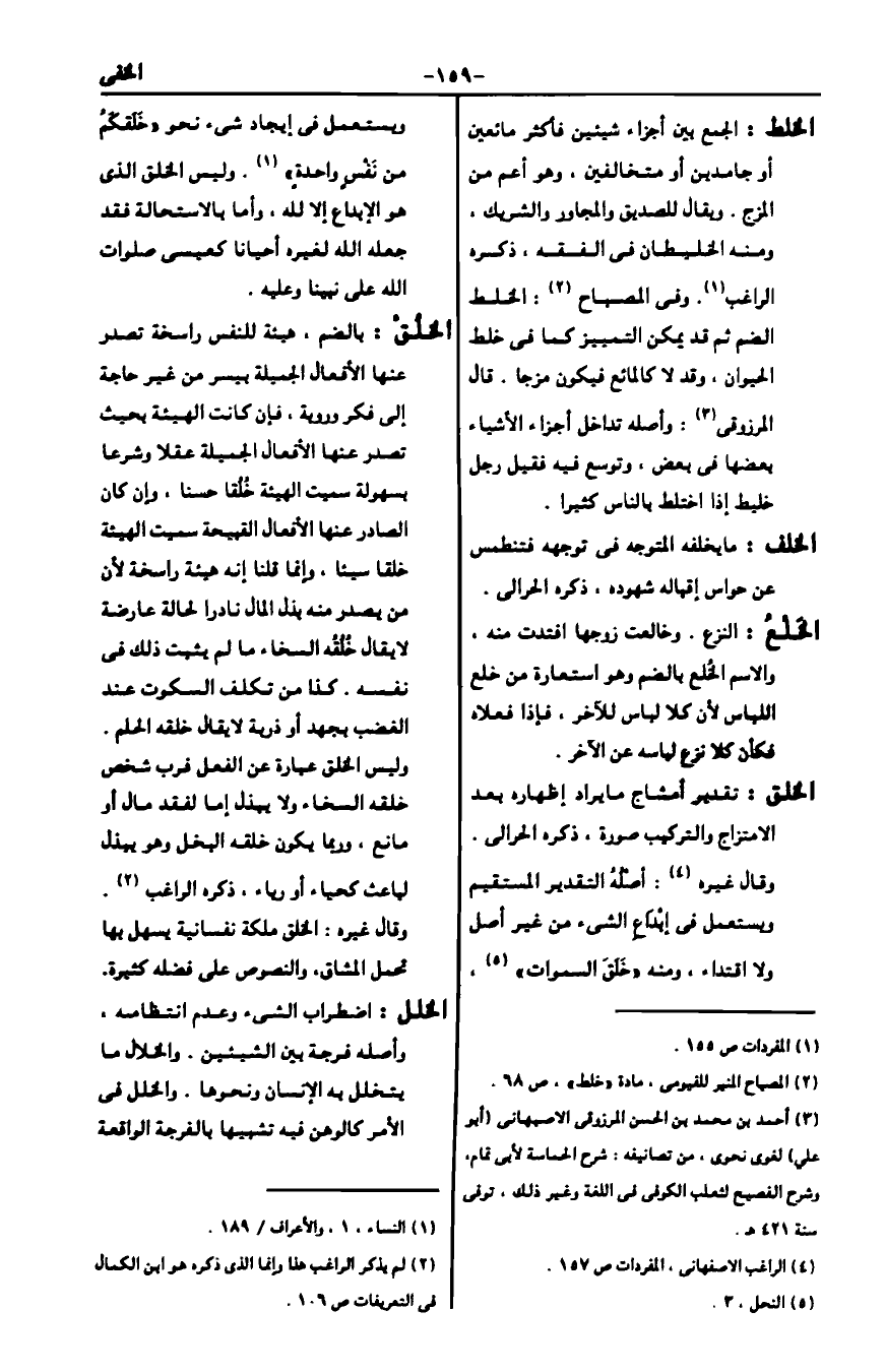 4 الراغب الأصفهاني. المفردات ص157.