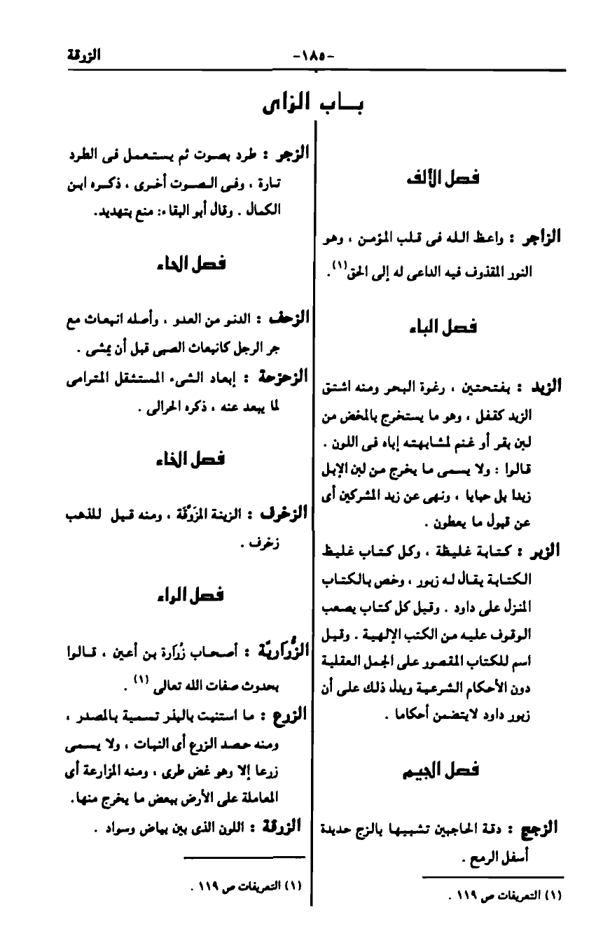 فصل الألف، فصل الباء، فصل الحيم، فصل الحاء، فصل الخاء، فصل الراء: