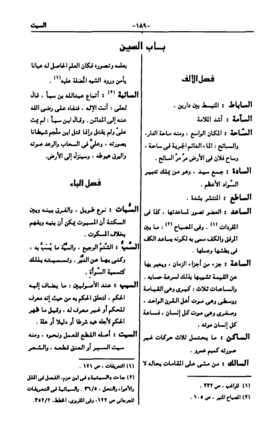 السالك: من مشى على المقامات بحاله لا بعلمه وتصوره فكان العلم الحاصل له عيانا يأمن ورود الشبه المضلة عليه3. السبئية4: أتباع عبد الله بن سبأ، قال لعلي: أنت الإله، فنفاه إلى المدائن. وقال ابن سبأ: لم يمت علي ولم يقتل وإنما قتل ابن ملجم شيطانا بصورته، وعلي في السحاب والرعد صوته والبرق هبوطه