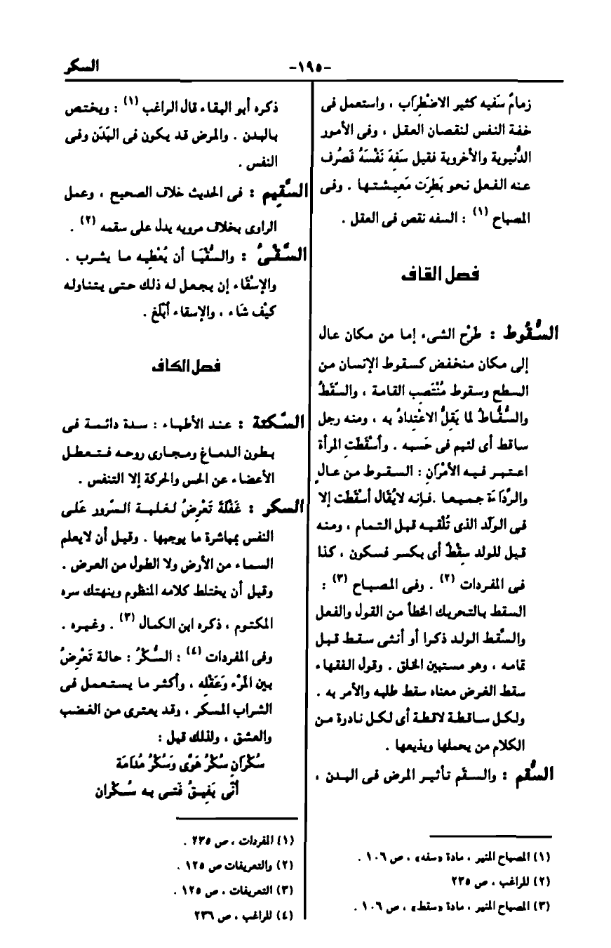 2 المصباح المنير، مادة "سقط" ص106.
