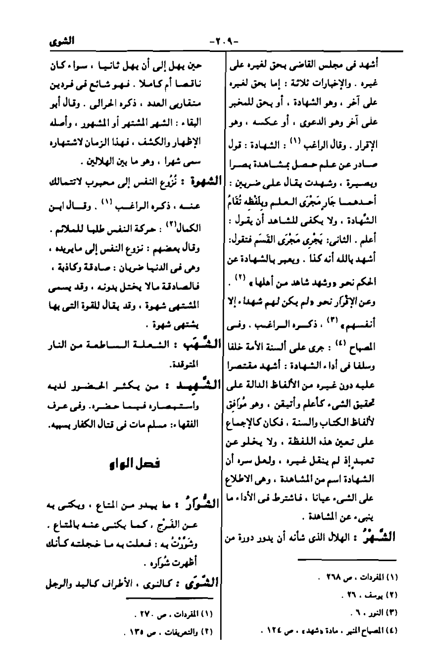 4 المصباح المنير، مادة "شهد"، ص124.
