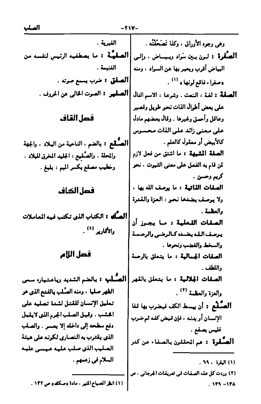 2 وردت كل هذه الصفات في تعريفات الجرجاني، ص138، 139.