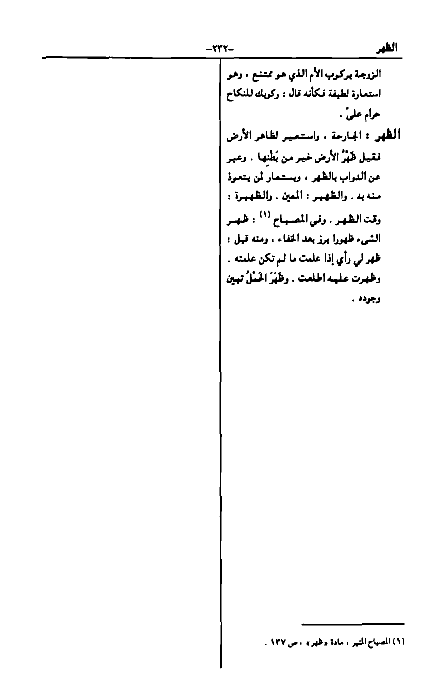 1 المصباح المنير، مادة "ظهر"، ص137.