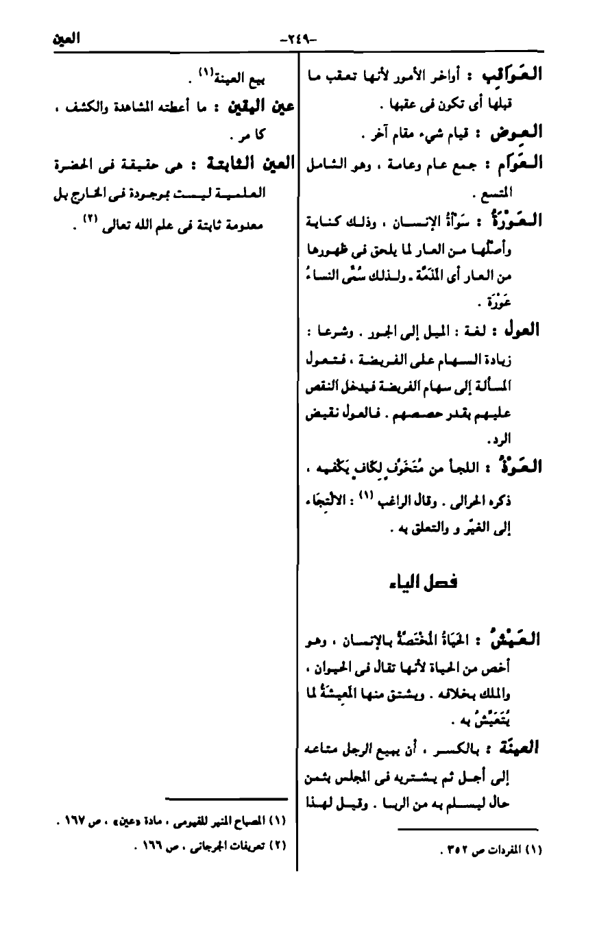 1 المصباح المنير للفيومي، مادة "عين"، ص167.