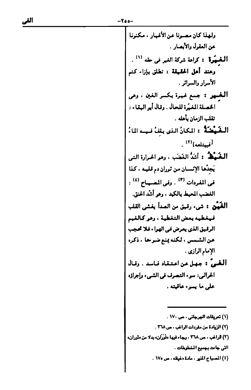 4 المصباح المنير، مادة "غيظ"، ص175.