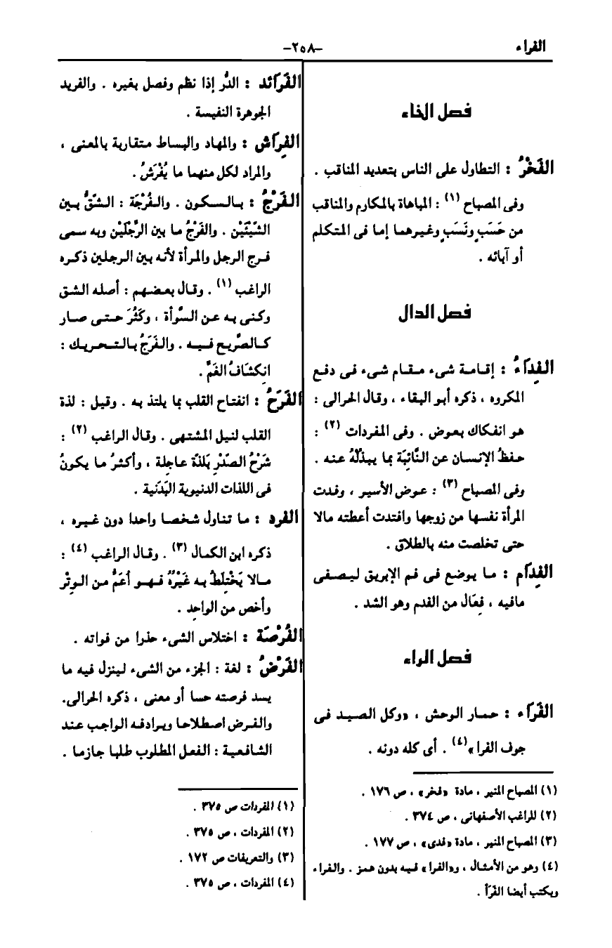 1 وهو من الأمثال، و"الفرا" فيه بدون همز. والفراء ويكتب أيضا الفرأ.