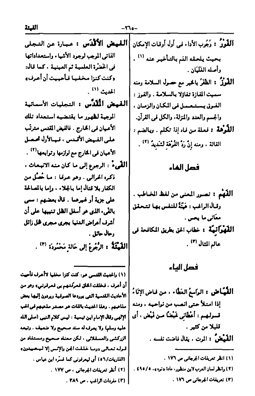 الفيض الأقدس: عبارة عن التجلي الذاتي الموجب لوجود الأشياء واستعداداتها في الحضرة العلمية ثم العينية، كما قال: "كنت كنزا مخفيا فأحببت أن أعرف" الحديث4.
