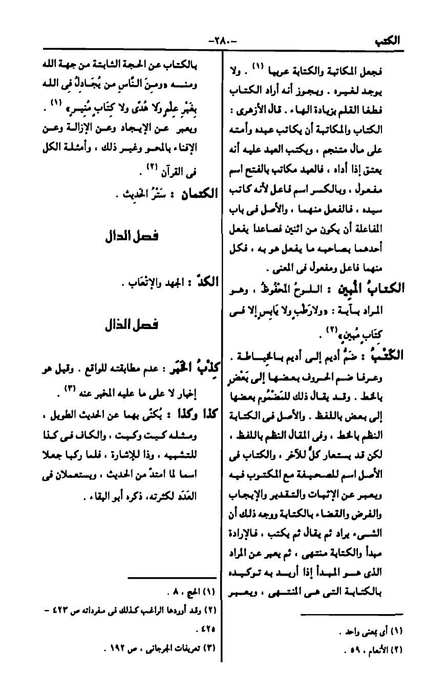 كذا وكذا: يكنى بهما عن الحديث الطويل، ومثله كيت وكيت والكاف في كذا للتشبيه، وذا للإشارة، ولما ركبا جعلا اسما لما امتد من الحديث، ويستعملان في العدد لكثرته ذكره أبو البقاء.