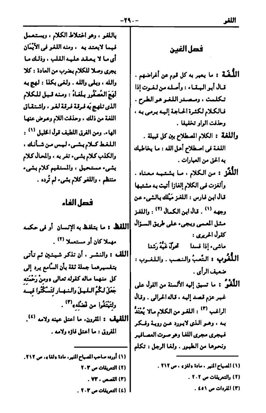 4 أورده صاحب المصباح المنير، مادة "لغا"، ص212.