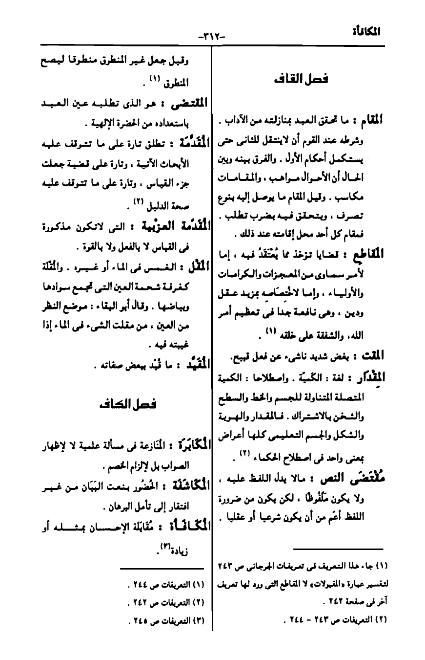 1 جاء في هذا التعريف في تعريفات الجرجاني ص243 لتفسير عبارة "المقبولات" لا المقاطع التي ورد لها تعريف آخر في صفحة 242.
