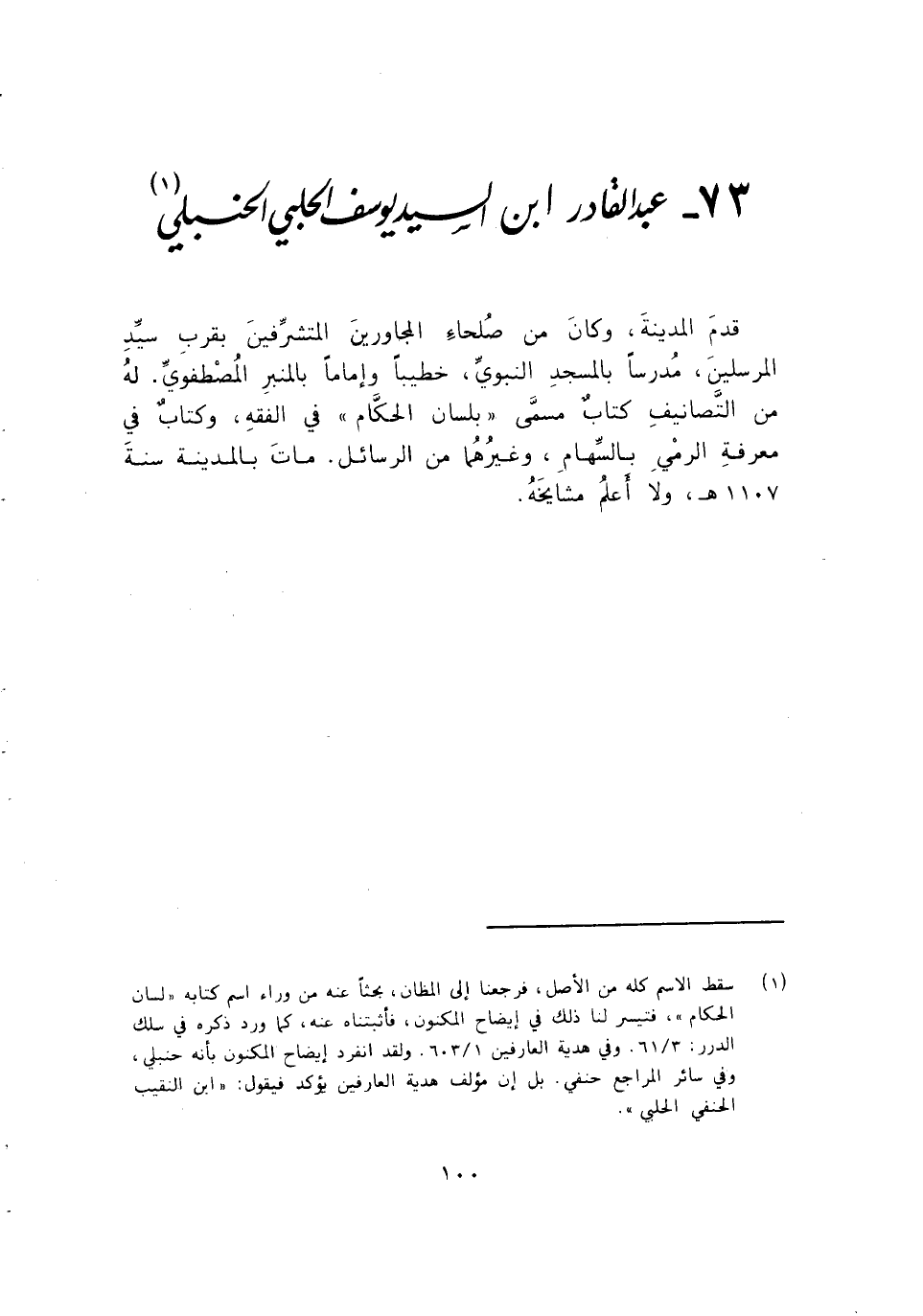 73 - عبد القادر ابن السيد يوسف الحلبي الحنبلي (1)