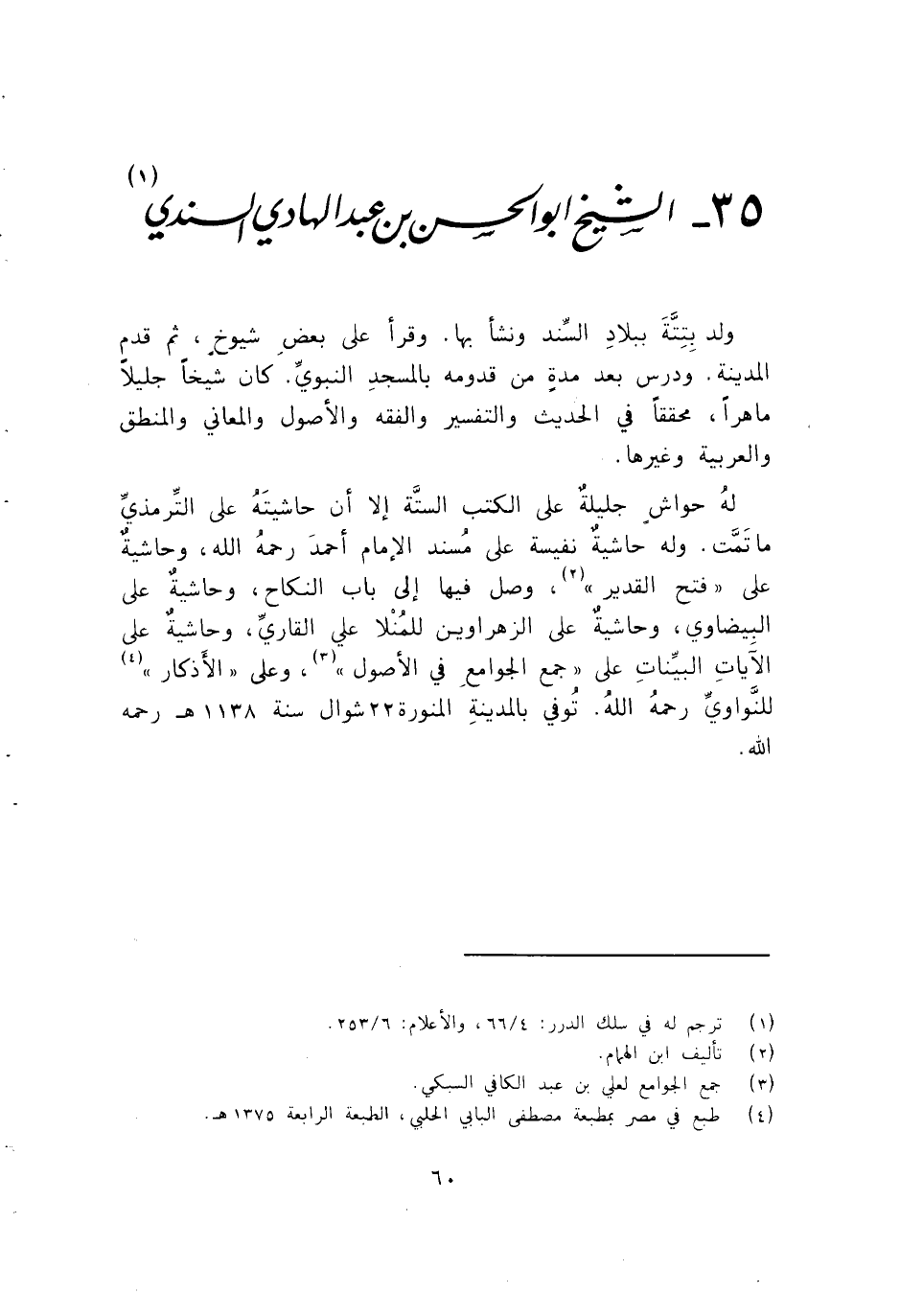 35 - الشيخ أبو الحسن بن عبد الهادي السندي (1)