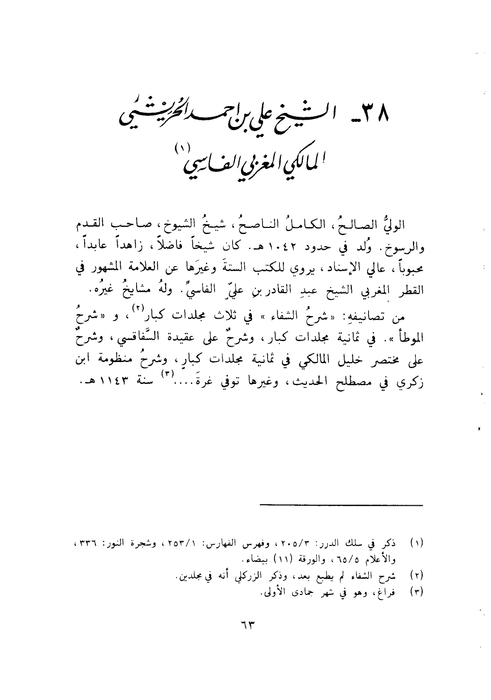 38 - الشيخ علي بن أحمد الحريشي المالكي المغربي الفاسي (1)