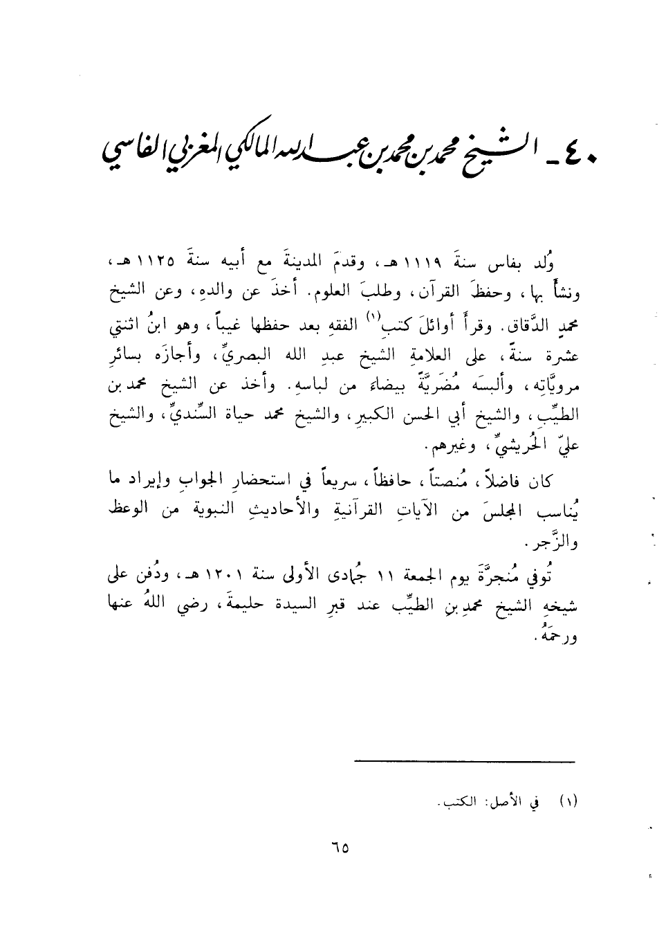 40 - الشيخ محمد بن محمد بن عبد الله المالكي المغربي الفاسي