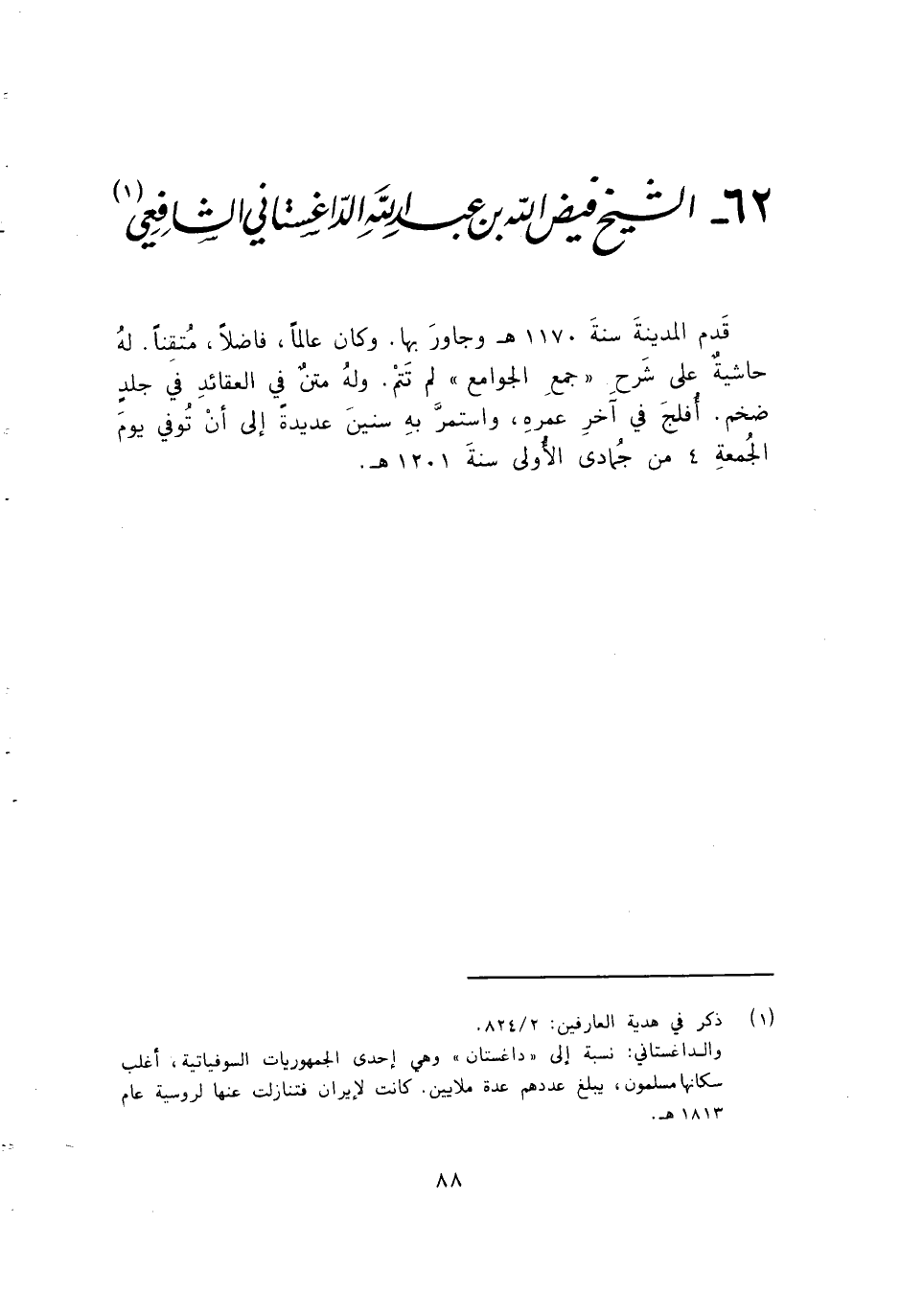 62 - الشيخ فيض الله بن عبد الله الداغستاني الشافعي (1)