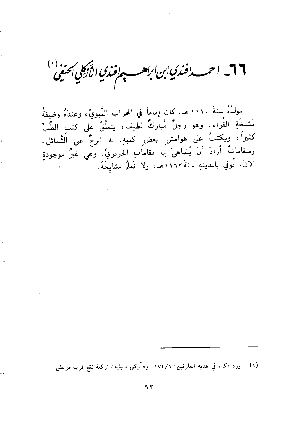 66 - أحمد أفندي ابن إبراهيم أفندي الأركلي الحنفى (1)