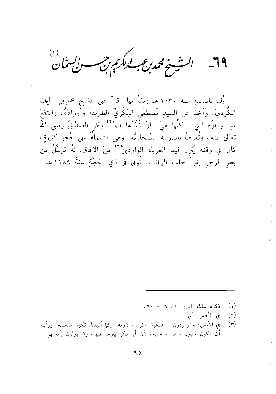 69 - الشيخ محمد بن عبد الكريم بن حسن السمان (1)