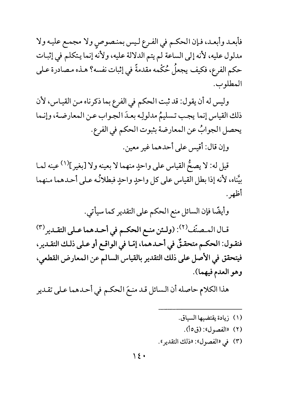 فأبعد وأبعد، فإن الحكم في الفرع ليس بمنصوصٍ ولا مجمع عليه ولا مدلول عليه، لأنه إلى الساعة لم يتم الدلالة عليه، ولأنه إنما يتكلم في إثبات حكم الفرع، فكيف يجعلُ حُكْمه مقدمةً في إثبات نفسه؟ هذه مصادرة على المطلوب.