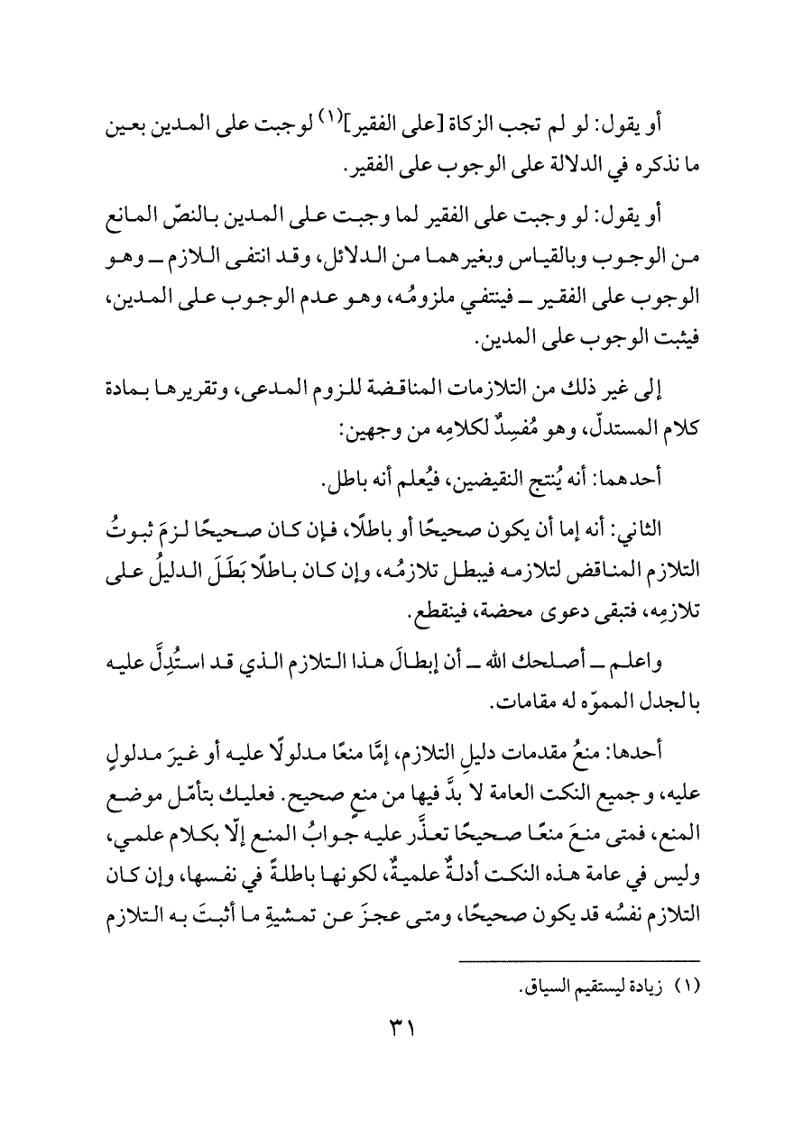 واعلم ــ أصلحك الله ــ أن إبطالَ هذا التلازم الذي قد استُدِلَّ عليه بالجدل المموّه له مقامات.