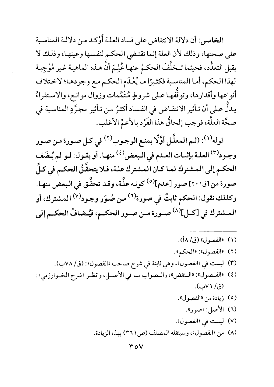 (¬٤) «الفصول»: «النقض»، والصواب ما في الأصل، وانظر «شرح الخوارزمي»: (ق/٧١ ب).