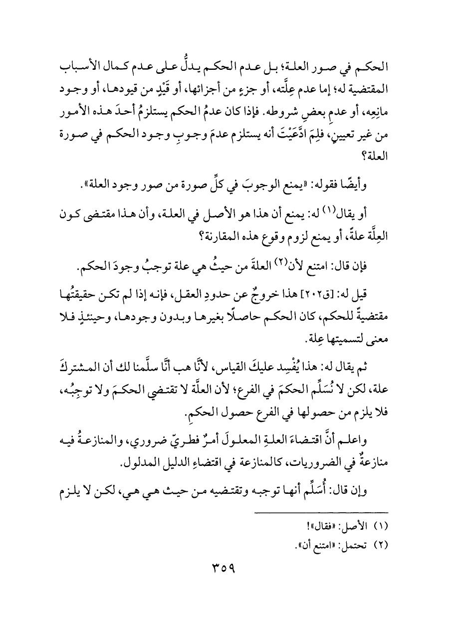 الحكم في صور العلة؛ بل عدم الحكم يدلُّ على عدم كمال الأسباب المقتضية له؛ إما عدم عِلَّته، أو جزءٍ من أجزائها، أو قَيْدٍ من قيودها، أو وجود مانِعِه، أو عدمِ بعضِ شروطه. فإذا كان عدمُ الحكم يستلزمُ أحدَ هذه الأمور من غير تعيينٍ، فلِمَ ادَّعَيْتَ أنه يستلزم عدمَ وجوبِ وجود الحكم في صورة العلة؟