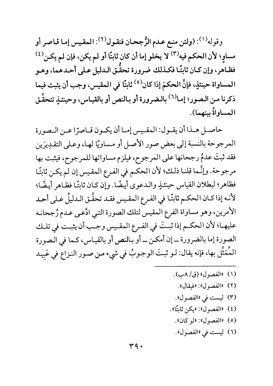 وقوله (¬١): (ولئن منع عدم الرُّجحان فنقول (¬٢): المقيس إما قاصر أو مساوٍ؛ لأن الحكم فيه (¬٣) لا يخلو إما أن كان ثابتًا أو لم يكن، فإن لم يكن (¬٤) فظاهر، وإن كان ثابتًا فكذلك ضرورة تحقُّق الدليل على أحدهما، وهو المساواة حينئذٍ، فإنَّ الحكمَ إذا كان (¬٥) ثابتًا في المقيس، وجب أن يثبت فيما ذكرنا من الصور؛ إما (¬٦) بالضرورة أو بالنص أو بالقياس، وحينئذٍ تتحقَّق المساواةُ بينهما).