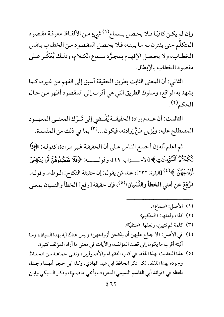 الثالث: أن عدم إرادة الحقيقة يُفْضي إلى تَرْك المعنى المعهود المصطلح عليه، ويُزيل ظنَّ إرادته، فيكون ... (¬٣) بما في ذلك من المفسدة.