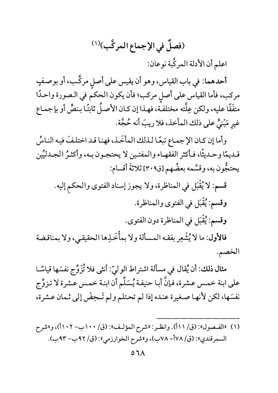 (¬١) "الفصول": (ق/١١ أ). وانظر: "شرح المؤلف": (ق/١٠٠ ب- ١٠٢ أ)، و"شرح السمرقندي": (ق/٧٨ أ- ٧٨ ب)، و"شرح الخوارزمي": (ق/٩٢ ب- ٩٣ ب).