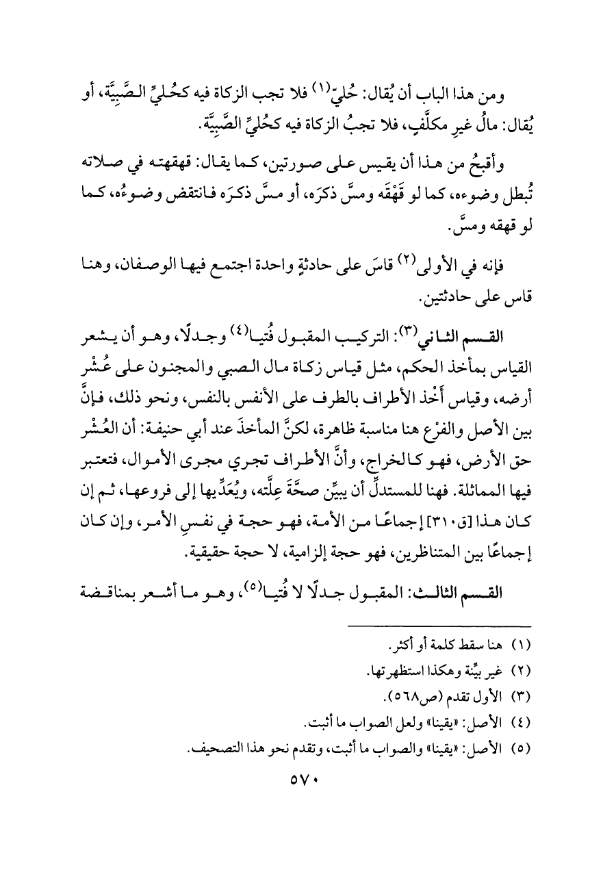 القسم الثالث: المقبول جدلًا لا فُتيا (¬٥)، وهو ما أشعر بمناقضة