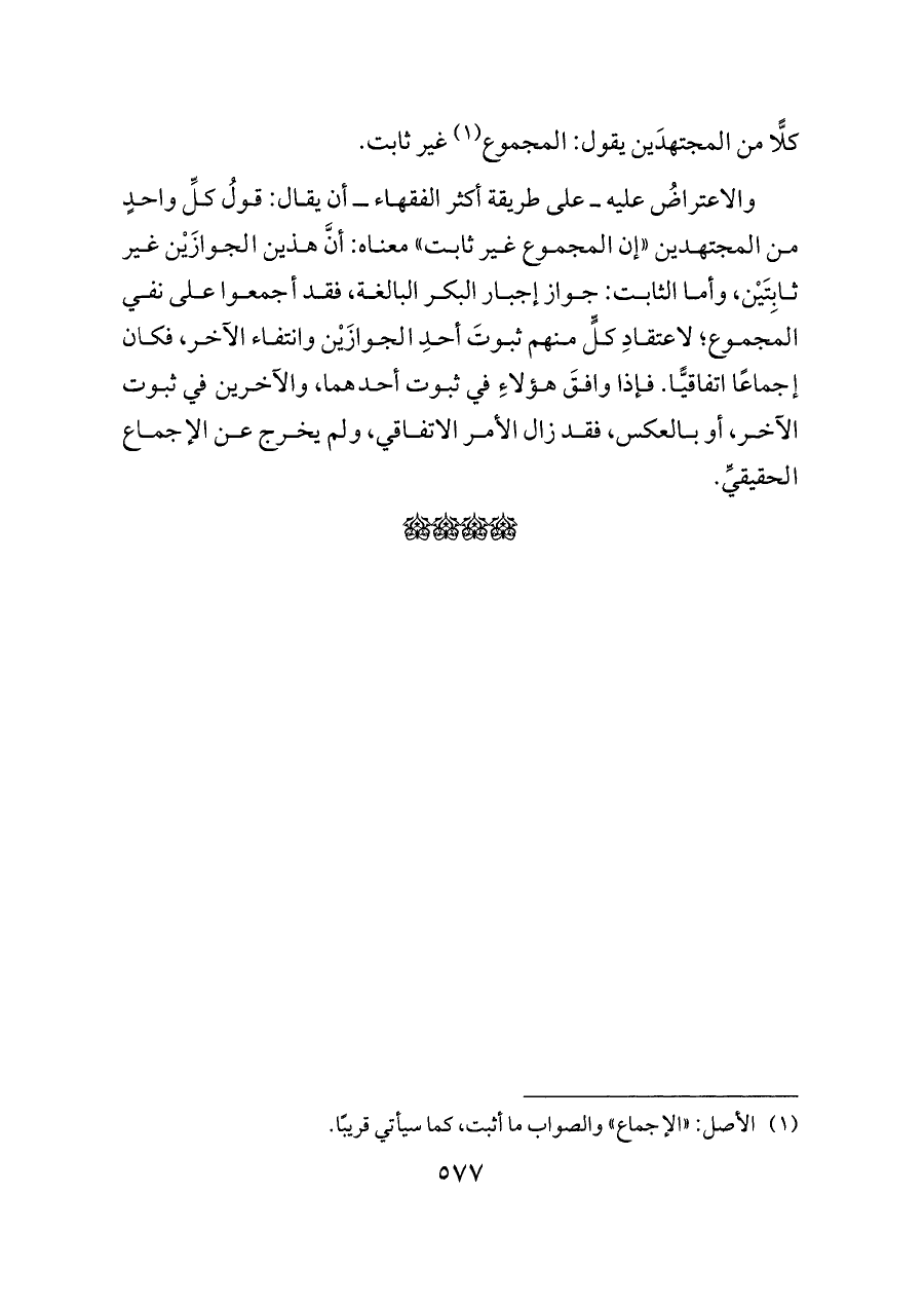 كلًّا من المجتهدَين يقول: المجموع (¬١) غير ثابت.