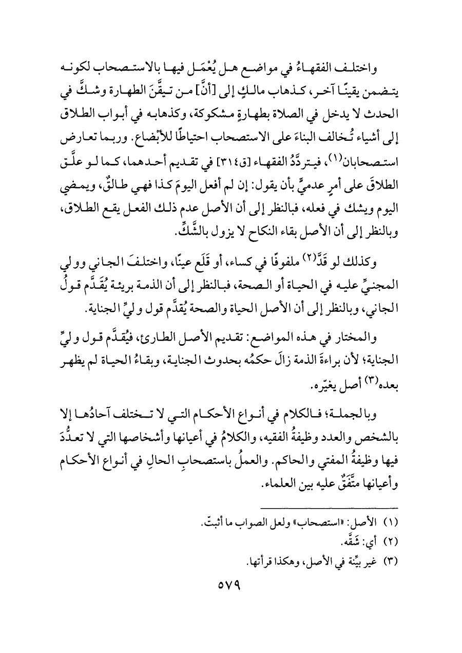 (¬١) الأصل: "استصحاب" ولعل الصواب ما أثبتّ.