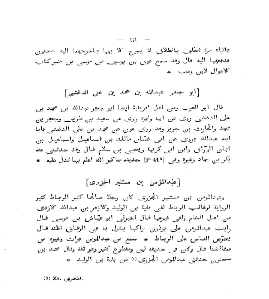 وَقَالَ مُحَمَّدُ بْنُ سُحْنُونٍ: حَدَّثَنِي عَبْدُ الْمُؤْمِنِ الْجَزَرِيُّ عَنْ بَقِيَّةَ بْنِ الْوَلِيدِ.