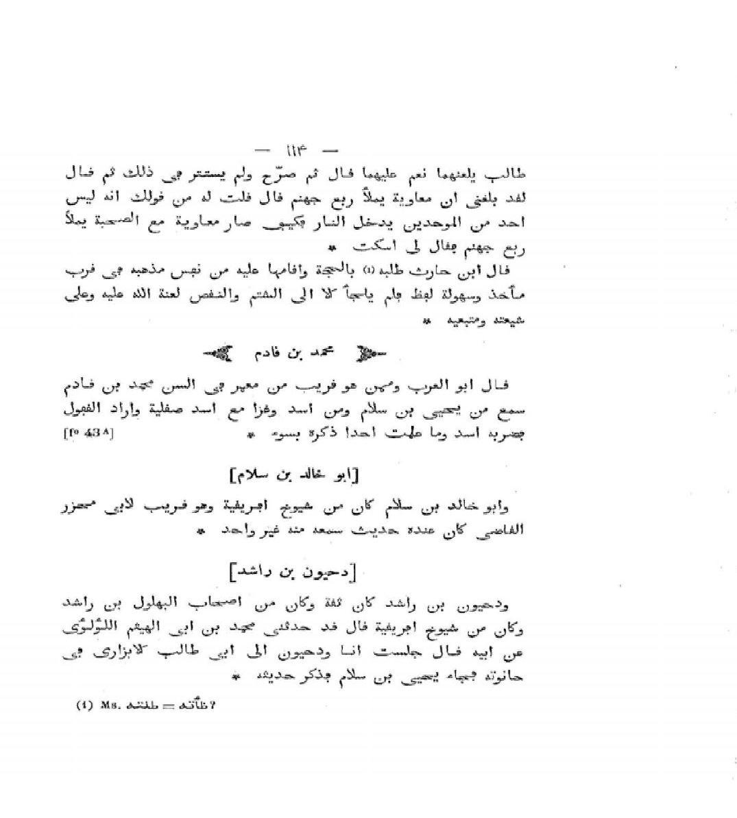 قَالَ أَبُو الْعَرَبِ: قَدْ حَدَّثَنِي مُحَمَّدُ بْنُ أَبِي الْهَيْثَمِ اللُّؤْلُؤِيُّ، عَنْ أَبِيهِ، قَالَ: جَلَسْتُ أَنَا وَدَحْيُونٌ إِلَى أَبِي طَالِبٍ عَبْدِ اللَّهِ بْنِ عُثْمَانَ الأَبْزَارِيِّ فِي حَانُوتِهِ، فَجَاءَ يَحْيَى بْنُ سَلامٍ، فَذَكَرَ حَدِيثَهُ.