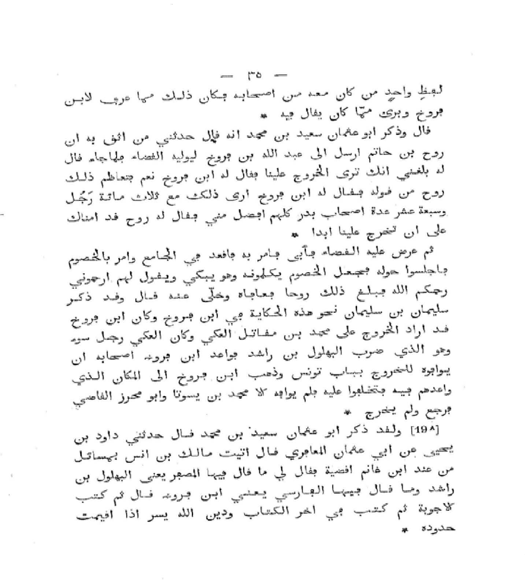 بِلَفْظٍ وَاحِدٍ مَنْ كَانَ مِنْ أَصْحَابِهِ كَذَا، فَكَانَ ذَلِكَ مِمَّا عُرِفَ لابْنِ فَرُّوخَ، وَبَرِئَ مِمَّا كَانَ يُقَالُ فِيهِ.