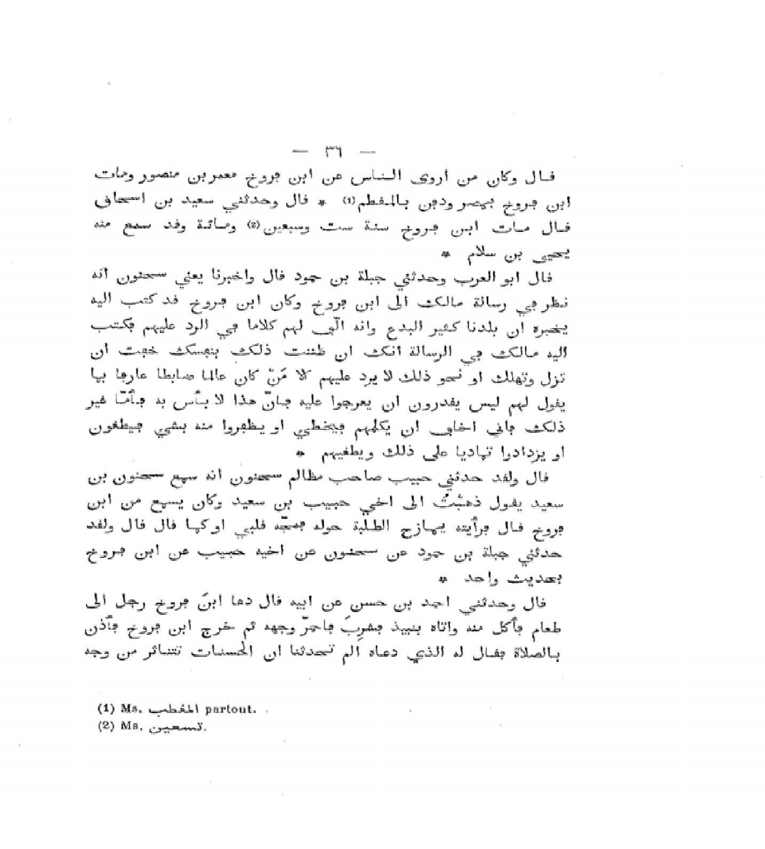 قَالَ أَبُو الْعَرَبِ: وَلَقَدْ حَدَّثَنِي جَبَلَةُ بْنُ حَمُّودٍ، عَنْ سُحْنُونٍ، عَنْ أَخِيهِ حَبِيبٍ، عَنِ ابْنِ فَرُّوخَ، بِحَدِيثٍ وَاحِدٍ.