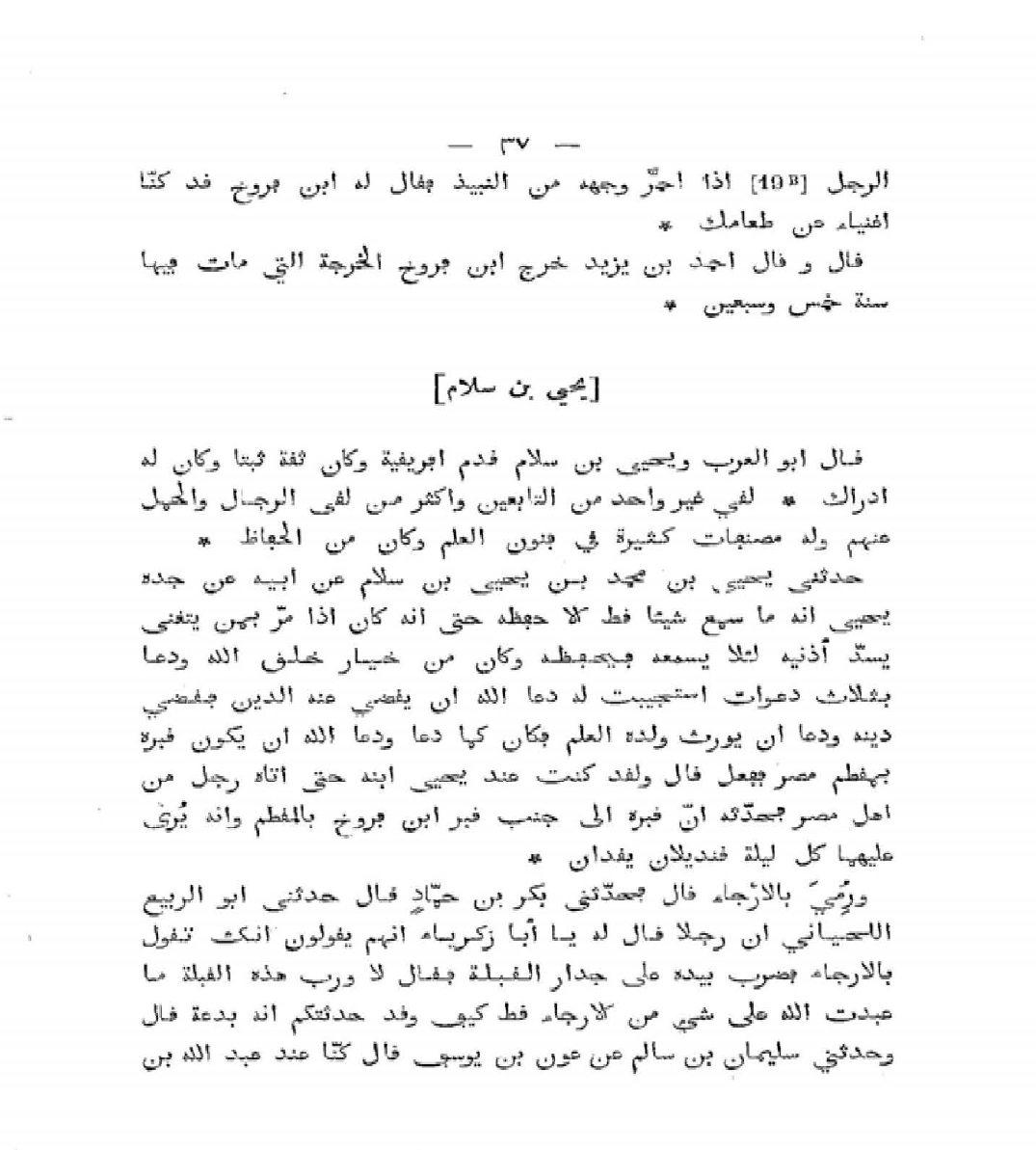 قَالَ أَبُو الْعَرَبِ: ويَحْيَى بْنُ سَلامٍ، قَدِمَ إِفْرِيقِيَّةَ، وَكَانَ ثِقَةً ثَبْتًا، وَكَانَ لَهُ إِدْرَاكٌ، لَقِيَ غَيْرَ وَاحِدٍ مِنَ التَّابِعِينَ، وَأَكْثَرَ مِنْ لُقِيِّ الرِّجَالِ وَالْحَمْلِ عَنْهُمْ، وَلَهُ مُصَنَّفَاتٌ كَثِيرَةٌ فِي فُنُونِ الْعِلْمِ، وَكَانَ مِنَ الْحُفَّاظِ.