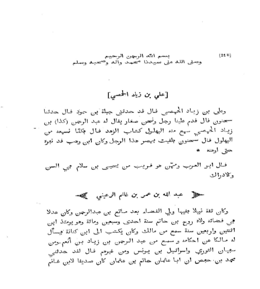 وَعَلِيُّ بْنُ زِيَادٍ الْحِمْصِيُّ، قَالَ أَبُو الْعَرَبِ: قَدْ حَدَّثَنِي جَبَلَةُ بْنُ حَمُّودٍ، قَالَ: حَدَّثَنَا سُحْنُونٌ، قَالَ: قَدِمَ عَلَيْنَا رَجُلٌ وَنَحْنُ صِغَارٌ، يُقَالُ لَهُ: عَلِيُّ بْنُ زِيَادٍ الْحِمْصِيُّ، سَمِعَ مِنْهُ الْبُهْلُولُ كِتَابَ (الزُّهْدِ) ، قَالَ: فَكُنَّا نَسْمَعُهُ مِنَ الْبُهْلُولِ، قَالَ سُحْنُونٌ: فَلَقِيتُ بِمِصْرَ هَذَا الرَّجُلَ، وَكَانَ ابْنُ وَهْبٍ قَدْ نَفَرَهُ حَتَّى أَوْهَنَهُ.