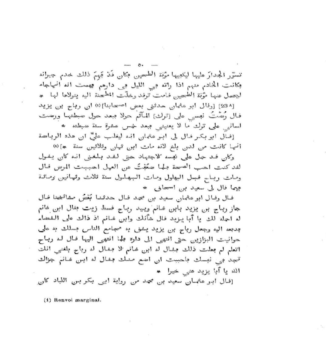 تَسَوَّرَ الْجِدَارَ عَلَيْهَا لِيَكْفِيَهَا مَئُونَةَ الطَّحِينِ، فَكَانَ قَدْ فَهِمَ ذَلِكَ خَدَمُ جِيرَانِهِ، فَكَانَتِ الْخَادِمُ مِنْهُنَّ إِذَا رَأَتْهُ فِي اللَّيْلِ فِي دَارِهَا فَهِمَتْ أَنَّهُ إِنَّمَا جَاءَ لِيَحْمِلَ عَنْهَا مَئُونَةَ الطَّحِينِ، قَامَتْ تَرْقُدُ، وَخَلَّتِ الْمَطْحَنَةَ إِلَيْهِ يَتَوَلاهَا لَهَا، وَقَالَ أَبُو عُثْمَانَ: حَدَّثَنِي بَعْضُ أَصْحَابِنَا، أَنَّ رَبَاحَ بْنَ يَزِيدَ، قَالَ: رُضْتُ نَفْسِي عَلَى تَرْكِ الْمَآثِمِ حَوْلا، فَبَعْدَ حَوْلٍ ضَبَطْتُهَا، وَرُضْتُ لِسَانِي عَلَى تَرْكِ مَا لا يَعْنِينِي فَبَعْدَ خَمْسَ عَشْرَةَ سَنَةً ضَبَطْتُهُ.