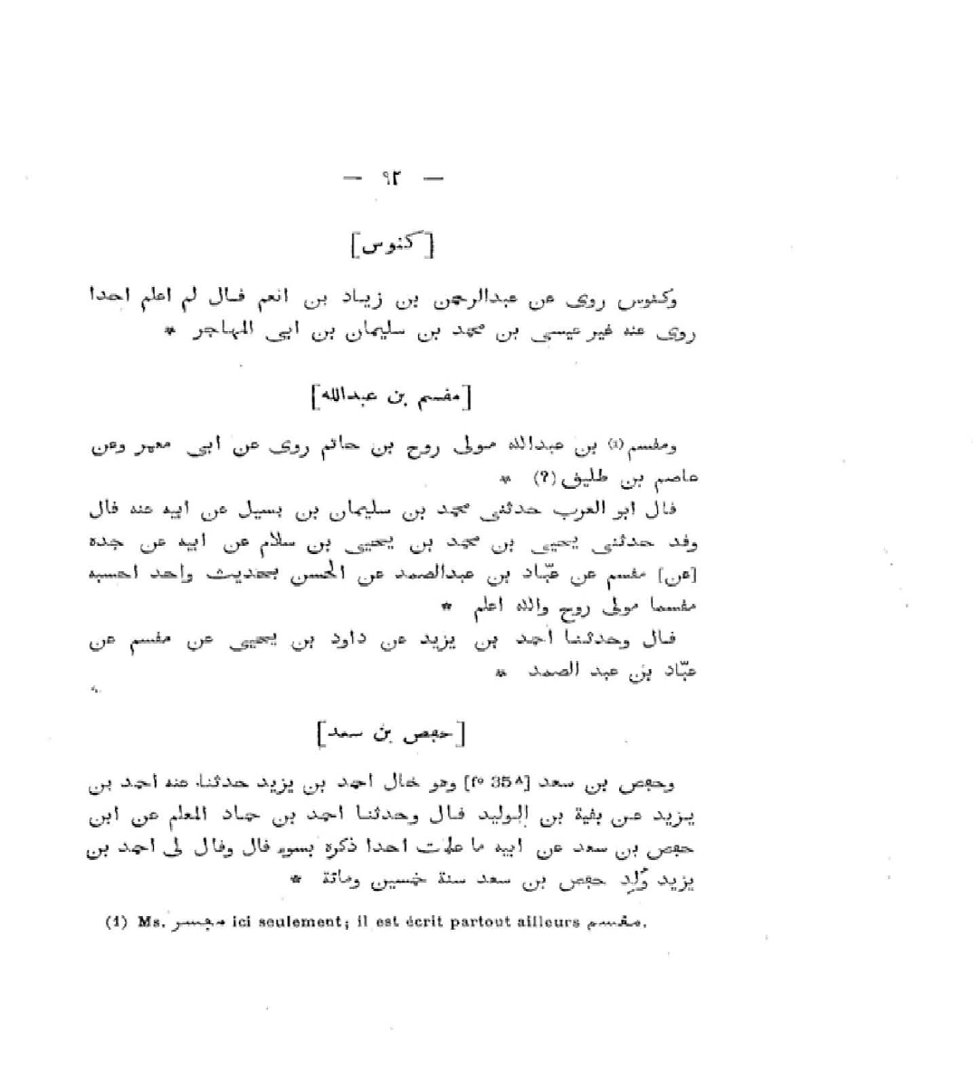 وَكنوس رَوَى عَنْ عَبْدِ الرَّحْمَنِ بْنِ زِيَادِ بْنِ أَنْعُمٍ، قَالَ أَبُو الْعَرَبِ: لَمْ أَعْلَمْ أَحَدًا رَوَى عَنْهُ غَيْرَ عِيسَى بْنَ مُحَمَّدِ بْنِ سُلَيْمَانَ بْنِ أَبِي الْمُهَاجِرِ.