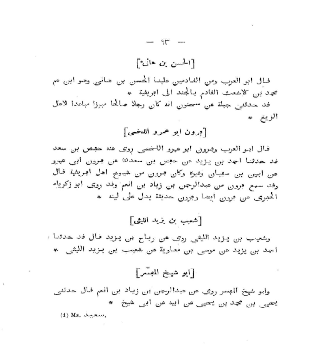 وَأَبُو شَيْخٍ الْمُفَسِّرُ رَوَى عَنْ عَبْدِ الرَّحْمَنِ بْنِ زِيَادِ بْنِ أَنْعُمٍ، قَالَ أَبُو الْعَرَبِ: حَدَّثَنِي يَحْيَى بْنُ مُحَمَّدِ بْنِ يَحْيَى بْنِ سَلامٍ عَنْ أَبِي شَيْخٍ.