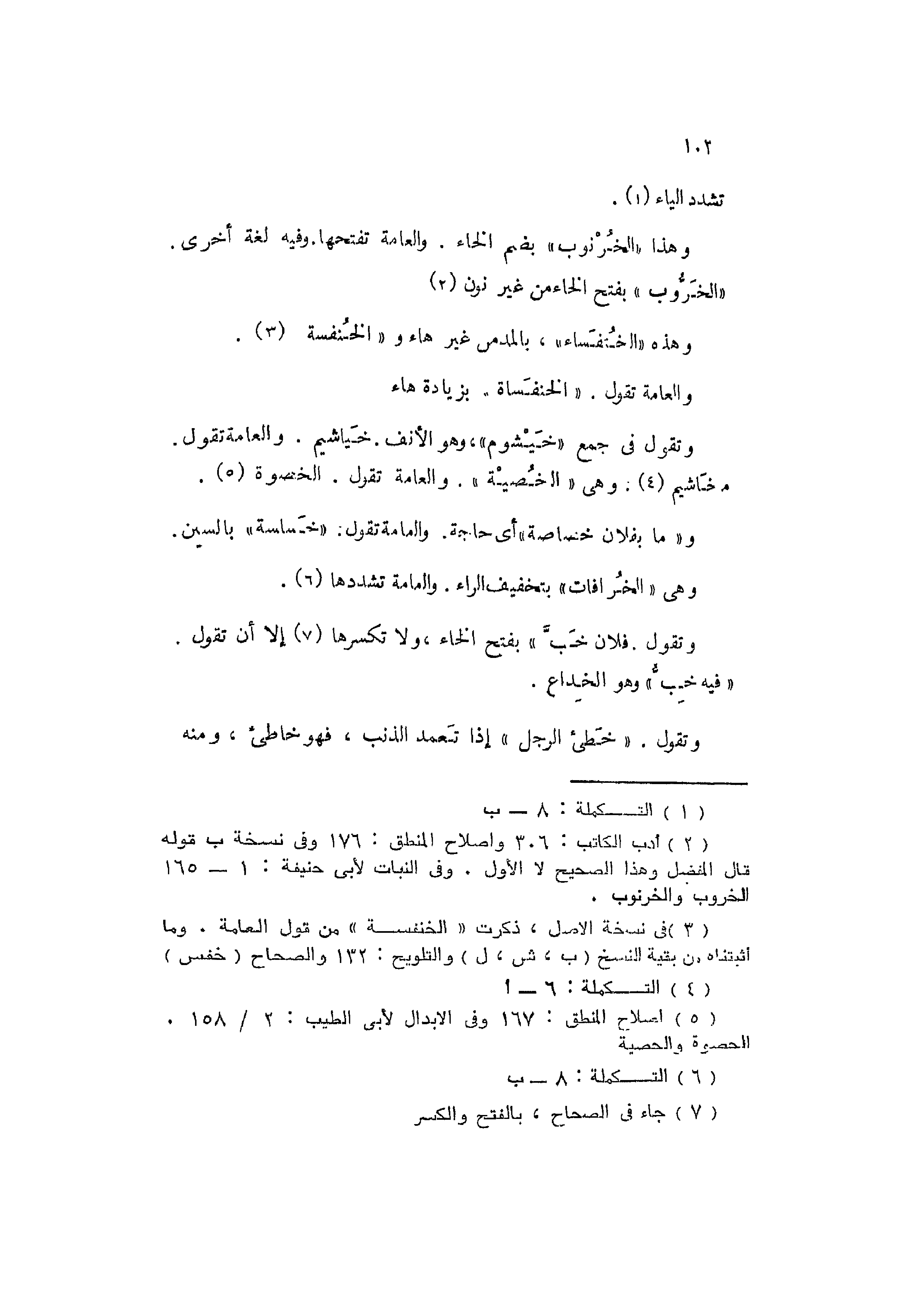وتقول في جمع "خَيْشوم"; وهو الأنف: خَياشيم. والعامة تقول: