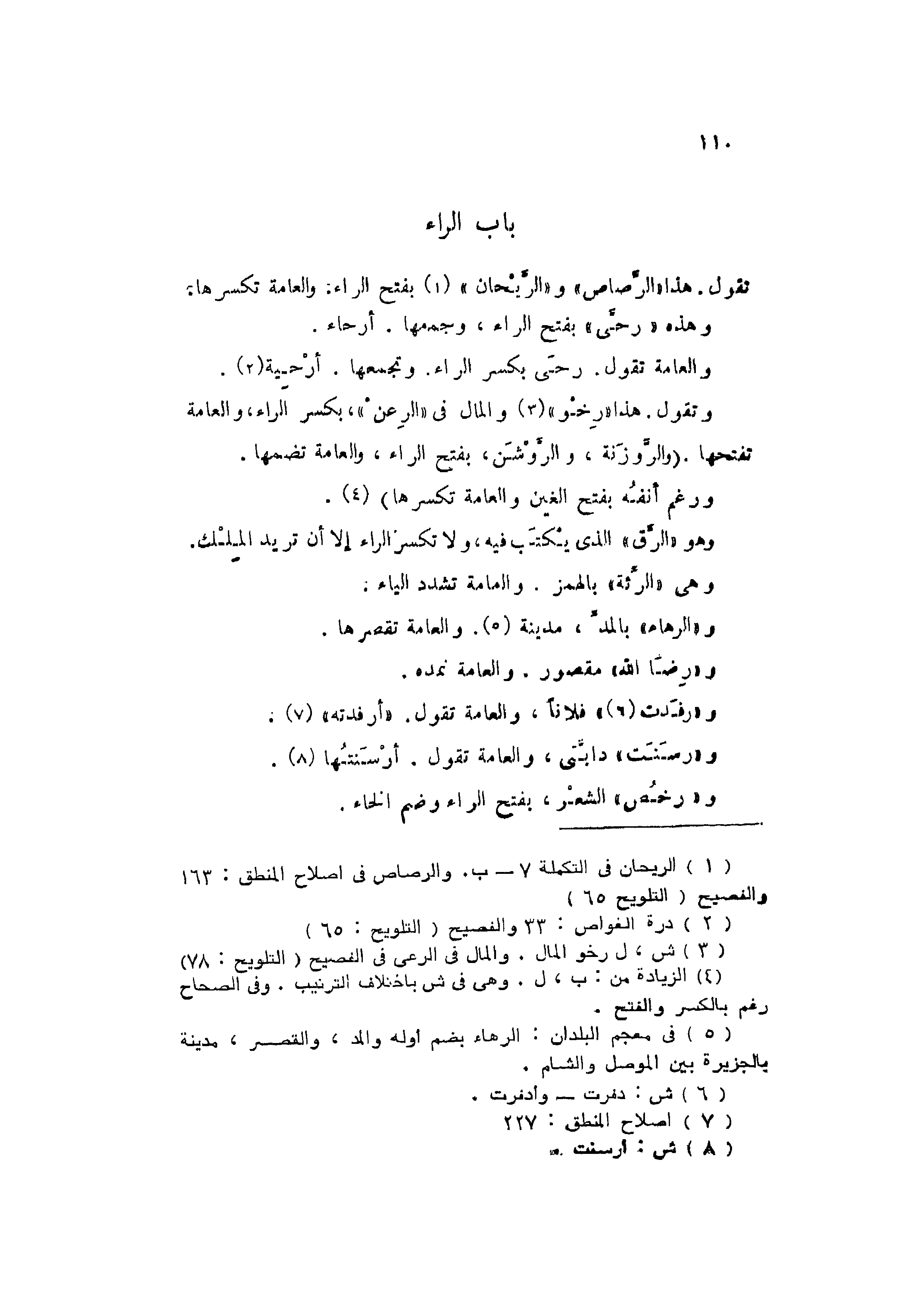 تقول: هذا "الرَّصاص" و "الرَّيْحان" بفتح الراء. والعامة تكسرها.