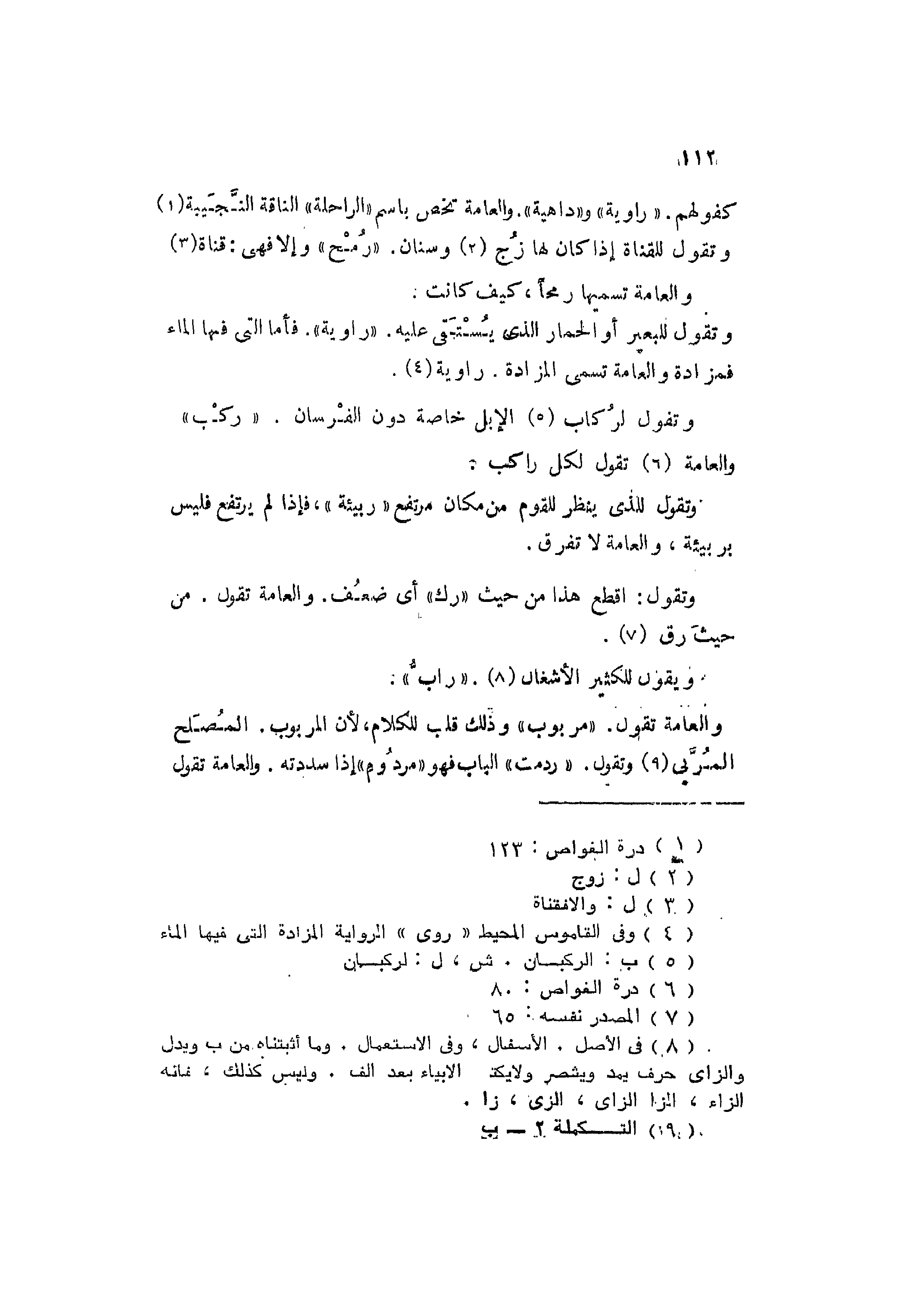 كقولهم: "راوية" و "داهية". والعامة تخص باسم "الراحلة" الناقة النَّجيبَة.