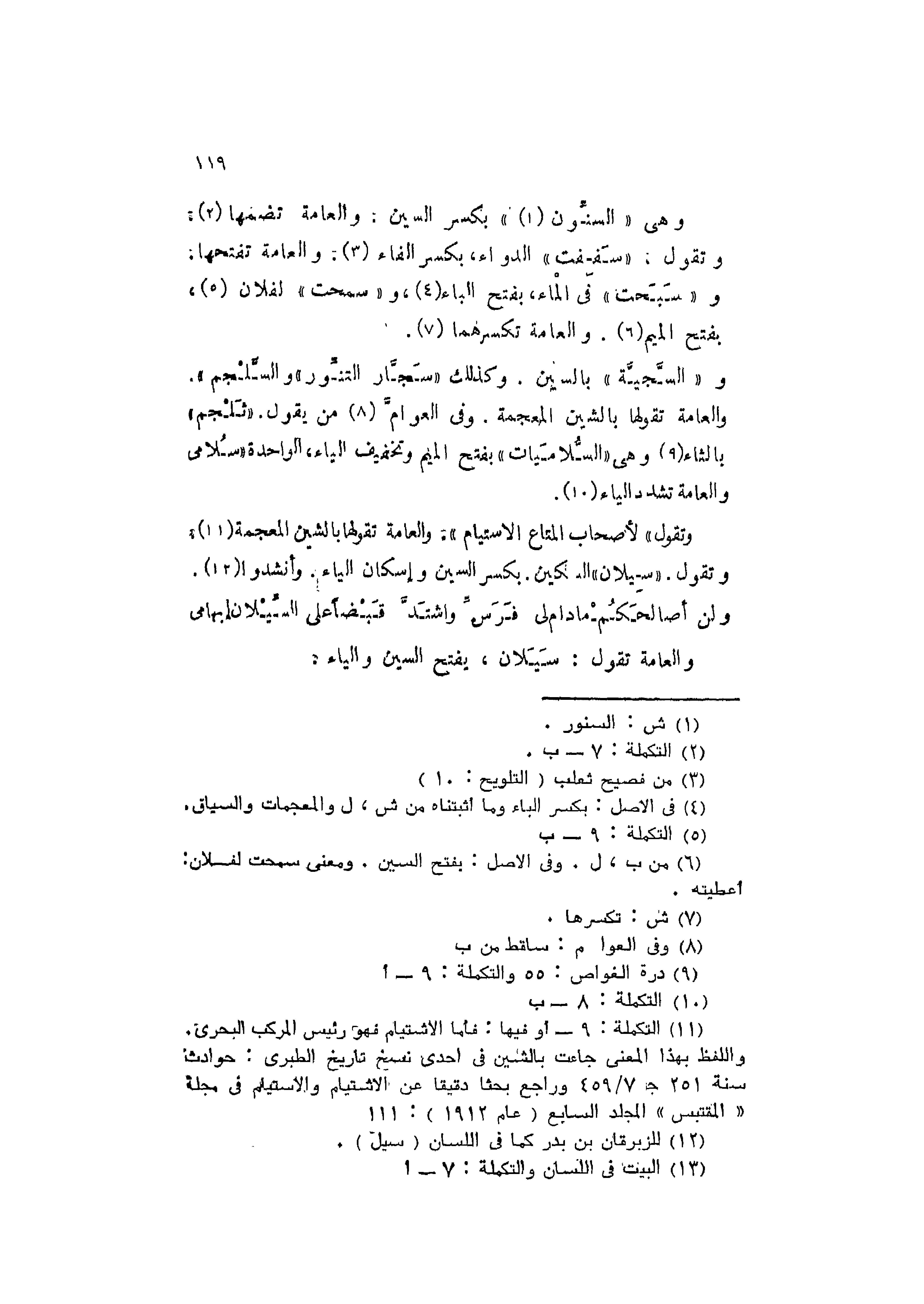 و"السَّجيَّة" بالسين. وكذلك "سَجَّار التِّنور" و "السَّلْجم".