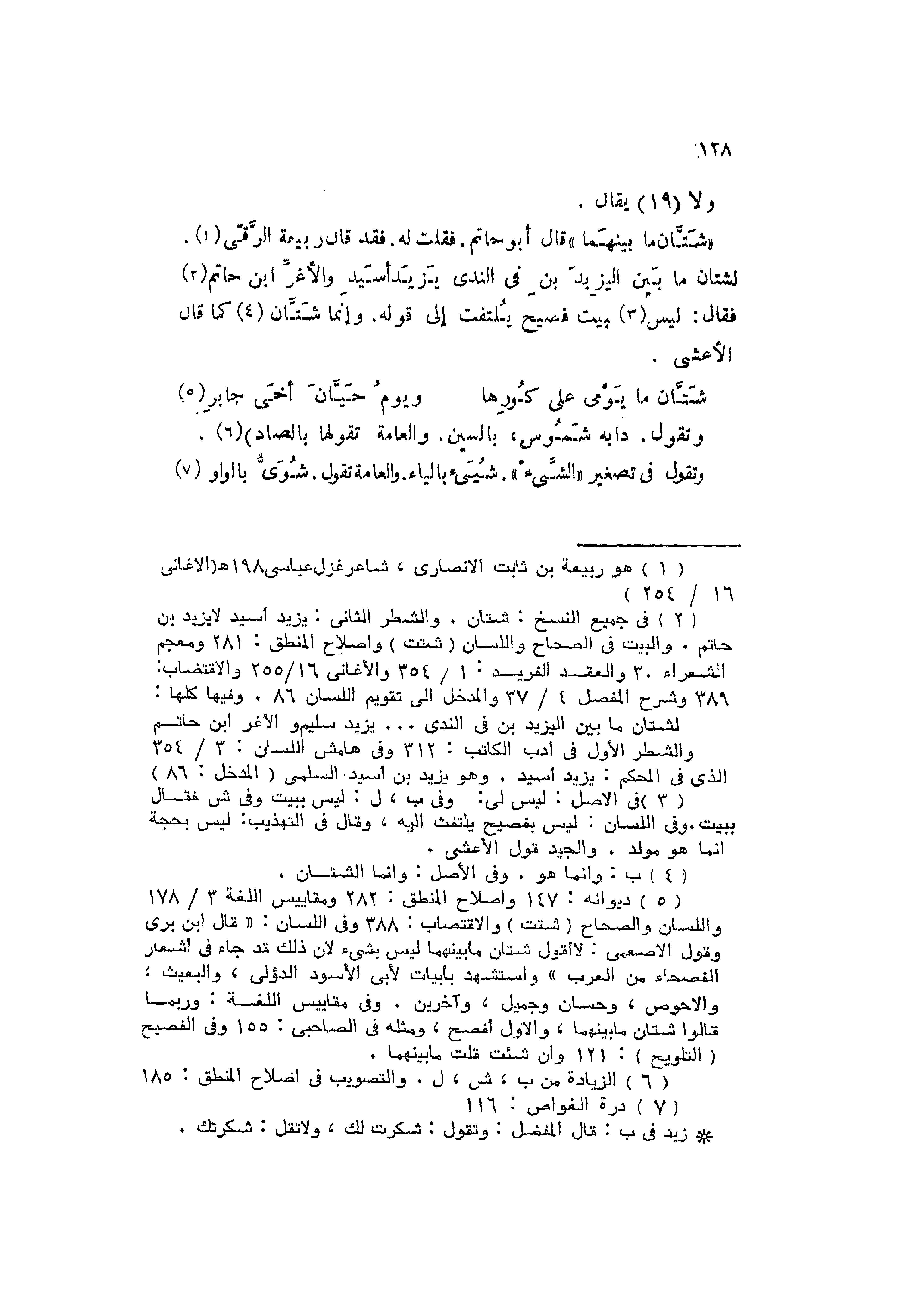 فقال: ليس بيت فصيح يُلتفت إلى قوله، وإنما شَتَّان كما قال