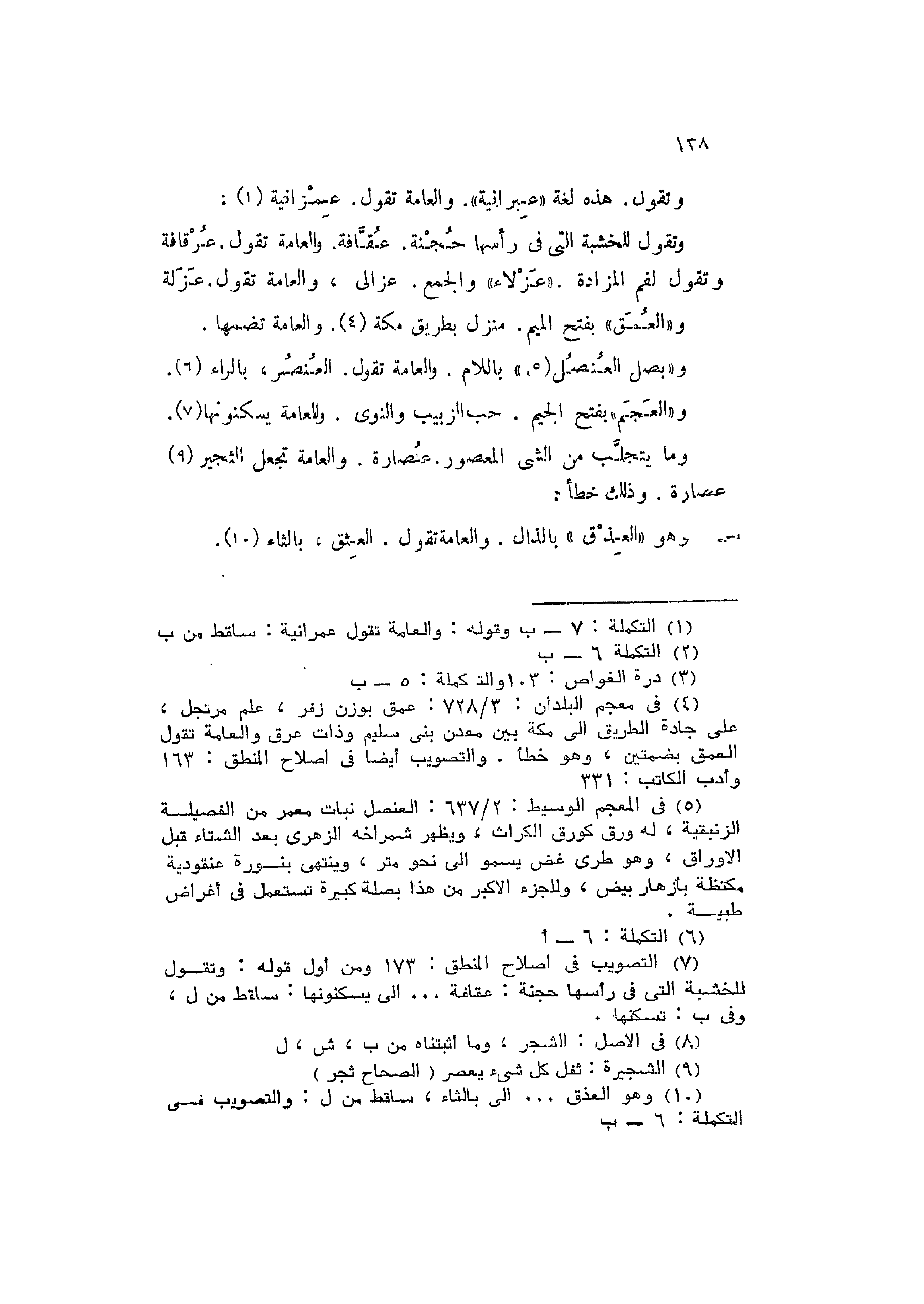 وتقول: هذه لغة "عِبرانية". والعامة تقول: عِمْرانية.